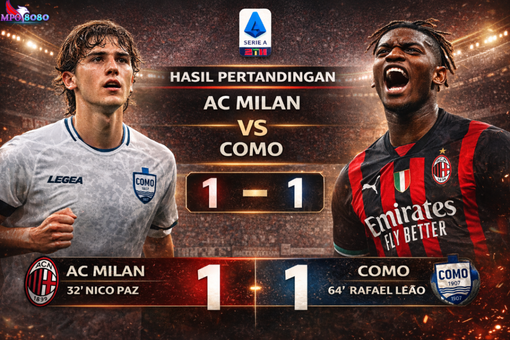 Hasil Pertandingan Bola Tadi Malam – Pertandingan Serie A pekan tunda antara AC Milan dan Como yang digelar di Stadion San Siro, Milan, pada Kamis (19 Februari 2026) dini hari WIB, berakhir dengan skor imbang 1-1. Laga yang semula dinantikan sebagai kesempatan Milan untuk memangkas jarak dengan pemuncak klasemen justru membuat mereka hanya membawa pulang satu poin penting.